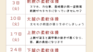 毎週火曜日 14:30~15:0060歳以上の方を対象に体操教室の開催しております(^^)2月の予定を掲載しますので、興...